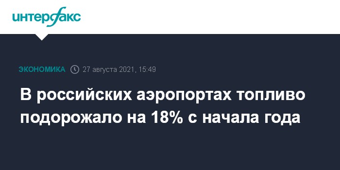 В российских аэропортах топливо подорожало на 18% с начала года