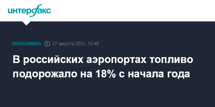 Москва. 27 августа. INTERFAX.RU - В российских аэропортах в августе топливозаправка подорожала относительно июля в среднем на 4%, до 55 240 рублей за тонну, а к началу года - в среднем на 18%, свидетельствует статистика Росавиации.