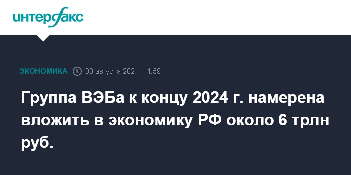 Группа ВЭБа к концу 2024 г. намерена вложить в экономику РФ около 6 трлн руб.