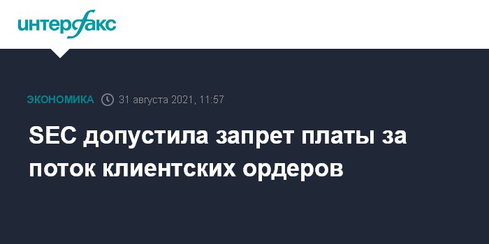 Москва. 31 августа. INTERFAX.RU - Комиссия по ценным бумагам и биржам (SEC) США может полностью запретить практику платы за поток ордеров (payment for order flow, PFOF), заявил глава SEC Гэри Генслер в интервью Barron's.