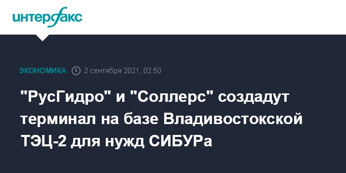 Москва. 2 сентября. INTERFAX.RU - ПАО "РусГидро", ООО "Соллерс Груп" и ПАО "СИБУР Холдинг" договорились о создании универсального грузового терминала общей емкостью до 3000 TEU на площадке Владивостокской ТЭЦ-2 с возможностью использования его мощностей для транспортировки нефтегазохимической продукции "СИБУРа", передал корреспондент "Интерфакса" с прошедшей в рамках ВЭФ-2021 церемонии подписания.
