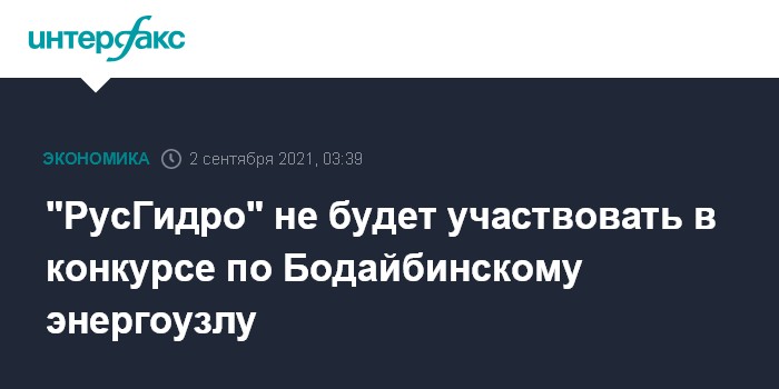 Москва. 2 сентября. INTERFAX.RU - ПАО "РусГидро" не планирует принимать участие в конкурсе на строительство генерации в Бодайбинском энергоузле, рассказал журналистам член правления компании Роман Бердников.