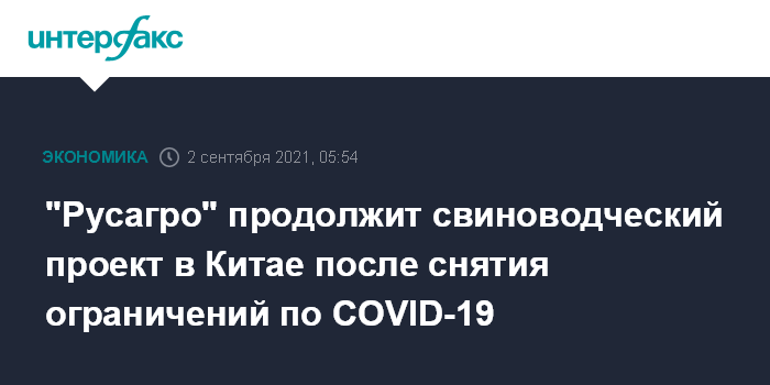 "Русагро" продолжит свиноводческий проект в Китае после снятия ограничений по COVID-19