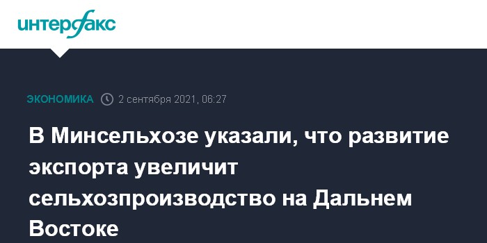 В Минсельхозе указали, что развитие экспорта увеличит сельхозпроизводство на Дальнем Востоке