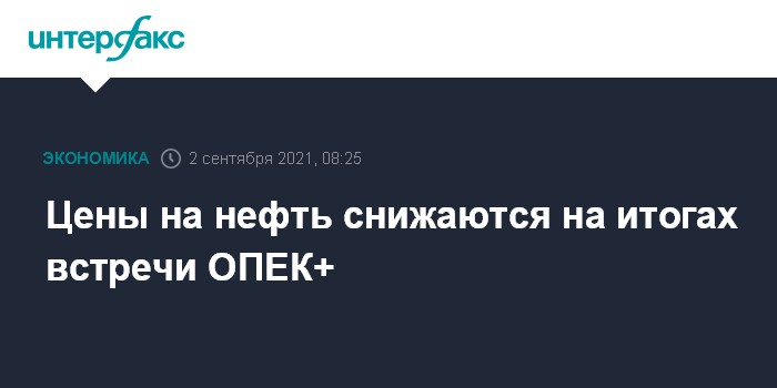 Москва. 2 сентября. INTERFAX.RU - Цены на нефть снижаются в четверг после решения министров государств ОПЕК+ сохранить план увеличения нефтедобычи на 400 тысяч баррелей в сутки (б/с) в месяц.