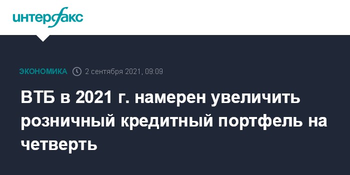 ВТБ в 2021 г. намерен увеличить розничный кредитный портфель на четверть