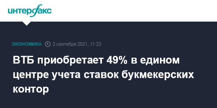 ВТБ приобретает 49% в едином центре учета ставок букмекерских контор