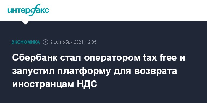 Москва. 2 сентября. INTERFAX.RU - Сбербанк стал оператором пилотируемой системы tax free и запустил платформу для возврата иностранным туристам НДС на покупки, сделанные в России, говорится в сообщении кредитной организации.