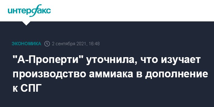 "А-Проперти" уточнила, что изучает производство аммиака в дополнение к СПГ