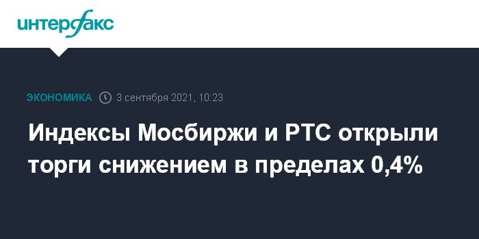 Индексы Мосбиржи и РТС открыли торги снижением в пределах 0,4%
