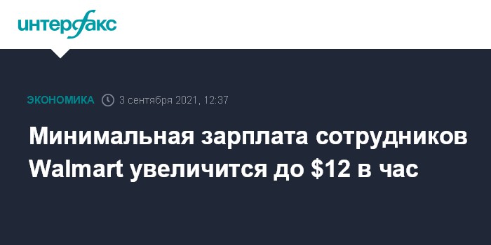 Москва. 3 сентября. INTERFAX.RU - Walmart Inc., крупнейший в США ритейлер по объему выручки, поднимет минимальную зарплату сотрудников до $12 в час, пишет The Wall Street Journal.