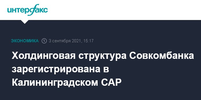 Холдинговая структура Совкомбанка зарегистрирована в Калининградском САР