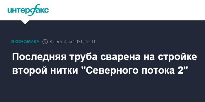 Москва. 6 сентября. INTERFAX.RU - Последняя секция трубы сварена в понедельник на строительстве второй нитки "Северного потока 2", сообщил оператор проекта Nord Stream 2 AG.