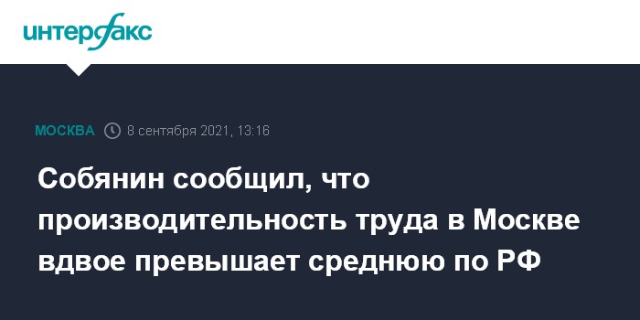 Москва. 8 сентября. INTERFAX.RU - Из-за большего объема оказываемых услуг производительность труда в Москве почти в два раза превышает среднюю по России, сообщил в среду мэр столицы Сергей Собянин.