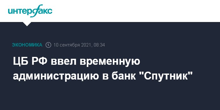 ЦБ РФ ввел временную администрацию в банк "Спутник"