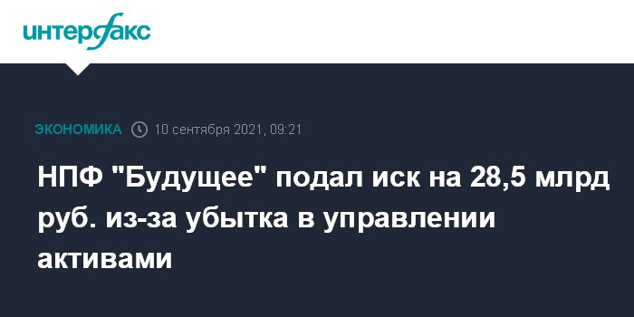 НПФ "Будущее" подал иск на 28,5 млрд руб. из-за убытка в управлении активами