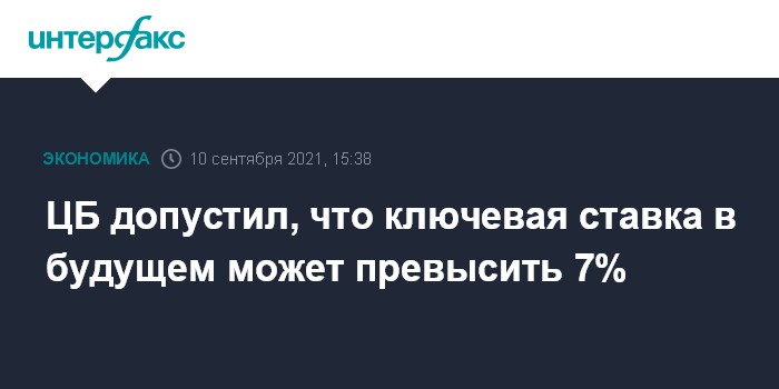 Москва. 10 сентября. INTERFAX.RU - Ключевая ставка в будущем может превысить 7%, заявила глава ЦБ Эльвира Набиуллина на брифинге в пятницу.