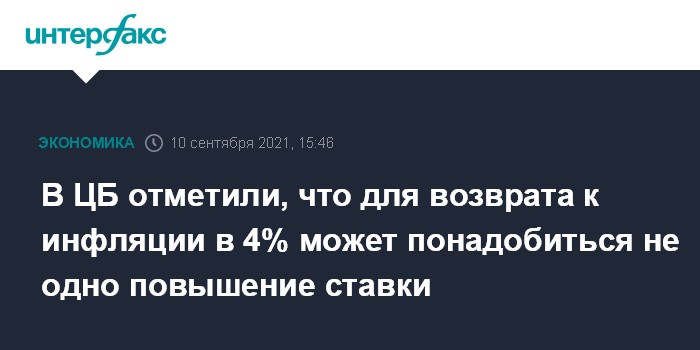 Москва. 10 сентября. INTERFAX.RU - Ситуация может развиваться таким образом, что для возвращения к инфляции в 4% может понадобиться не одно повышение ставки, прокомментировала новый сигнал регулятора глава Банка России Эльвира Набиуллина на пресс-конференции в пятницу.