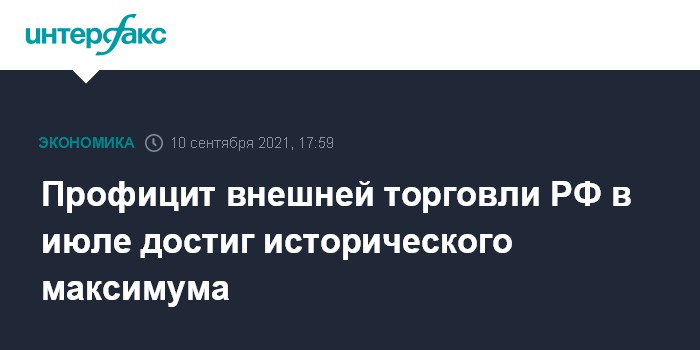 В июле 2021 года объем экспорта вырос по сравнению с июнем на 13%, до $49,485 млрд. Этот результат стал вторым в истории, он уступил 1,5% объему экспорта в декабре 2011 года, когда Россия экспортировала товаров на $50,248 млрд.
