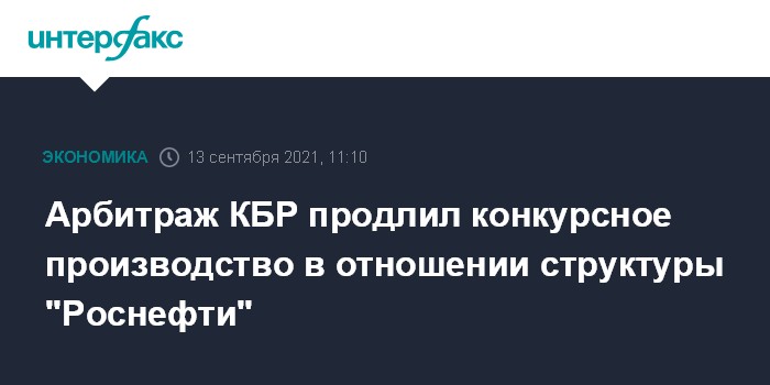 Москва. 13 сентября. INTERFAX.RU - Арбитражный суд Кабардино-Балкарской Республики продлил на шесть месяцев - до 14 марта 2022 года - конкурсное производство в отношении ПАО "НК "Роснефть - Кабардино-Балкарская топливная компания" ("Роснефть-КБТК"), говорится в материалах суда.