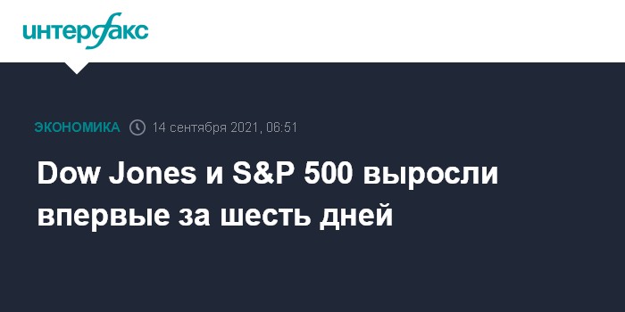 Москва. 14 сентября. INTERFAX.RU - Американские фондовые индексы Dow Jones Industrial Average и Standard & Poor's 500 в понедельник выросли впервые за шесть торговых сессий на фоне отсутствия значимых корпоративных новостей или статистической информации.