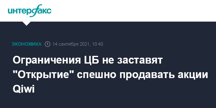 Ограничения ЦБ не заставят "Открытие" спешно продавать акции Qiwi