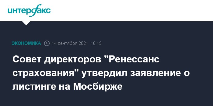 Совет директоров "Ренессанс страхования" утвердил заявление о листинге на Мосбирже