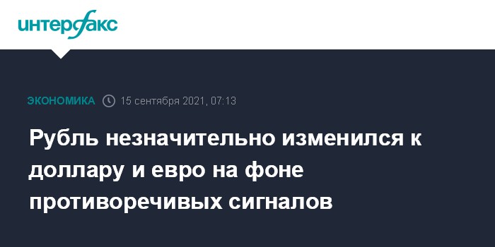 По мнению экспертов "Интерфакс-ЦЭА", незначительные изменения валютного курса рубля к доллару и евро на старте торгов 15 сентября обусловлены неоднозначными сигналами, поступающими с мировых рынков капитала. Глобальные инвесторы пытаются осознать, смогут ли опубликованные накануне данные по потребительской инфляции в США за август, указавшие на ее некоторое замедление, удержать Федеральную резервную систему от начала сворачивания стимулирующих программ уже в этом году. При этом мировые цены на нефть в среду утром умеренно подрастают после незначительных изменений накануне.