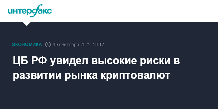 Москва. 15 сентября. INTERFAX.RU - Центральный банк РФ видит высокие риски в развитии рынка криптовалют, ведет работу с банками с целью ограничить переводы платежей в пользу криптовалютных бирж и готовит законодательные изменения, заявил первый зампред ЦБ Сергей Швецов.
