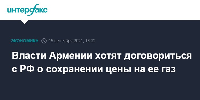 Москва. 15 сентября. INTERFAX.RU - Армения надеется, что цена на поставляемый из России природный газ не будет повышена в 2021 году, заявил вице-премьер республики Мгер Григорян.