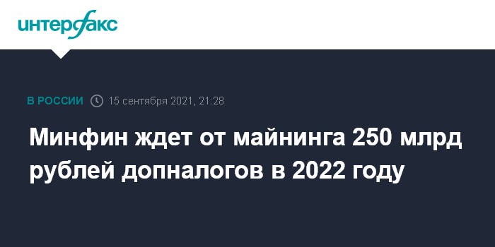 Минфин ждет от майнинга 250 млрд рублей допналогов в 2022 году