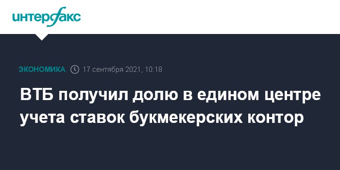 ВТБ получил долю в едином центре учета ставок букмекерских контор