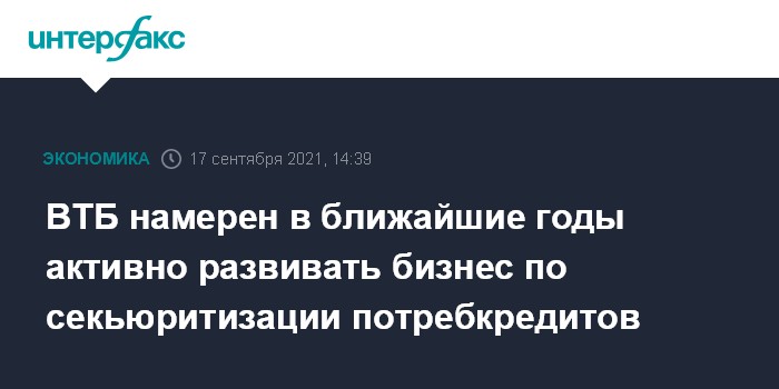 ВТБ намерен в ближайшие годы активно развивать бизнес по секьюритизации потребкредитов