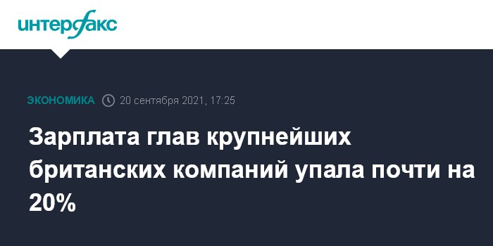 Москва. 20 сентября. INTERFAX.RU - За прошедший финансовый год зарплата гендиректоров компаний, входящих в британский индекс FTSE 250, упала почти на 20% в связи с сокращением бонусов и заморозки выплат в период пандемии коронавируса, показал анализ годовых отчетов компаний, проведенный PwC.
