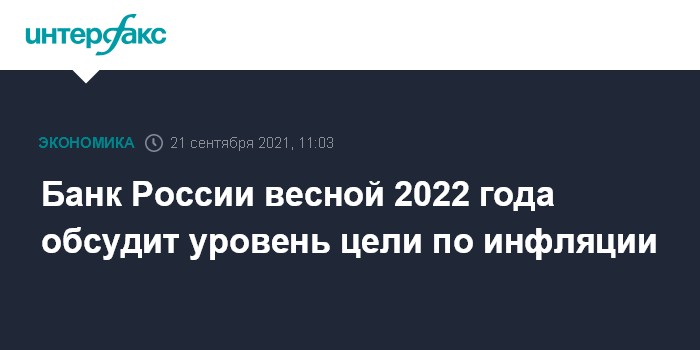 Этот целевой показатель может быть пересмотрен по итогам обзора денежно-кредитной политики (monetary policy review), проведение которого в конце июня 2021 года анонсировала председатель Банка России Эльвира Набиуллина. Этот анализ, как ожидается, продлится год. План работ в рамках этого анализа регулятор планирует представить во второй половине сентября.