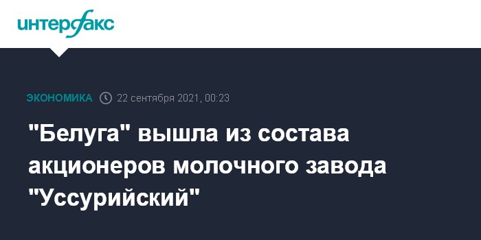 Москва. 22 сентября. INTERFAX.RU - "Белуга Групп", которая, помимо производства алкогольной продукции, владеет активами в пищевой промышленности, вышла из состава акционеров молочного завода "Уссурийский", следует из материалов компании.