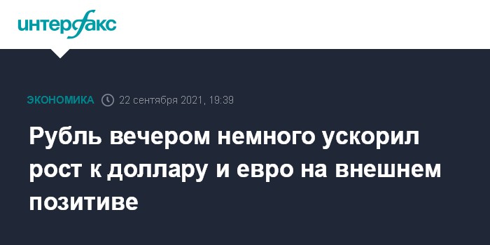 Как отмечают эксперты "Интерфакс-ЦЭА", рубль немного усилил темпы роста к доллару и евро на вечерних торгах на фоне позитивной динамики мировых рынков и активно дорожающей нефти. Между тем инвесторы продолжают находиться в ожидании итогов сентябрьского заседания Федеральной резервной системы (ФРС) и пресс-конференции главы Федрезерва Джерома Пауэлла, который может внести больше ясности в вопрос о том, когда начнется сворачивание программы выкупа активов.