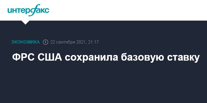 Москва. 22 сентября. INTERFAX.RU - Федеральная резервная система (ФРС) США сохранила процентную ставку по федеральным кредитным средствам (federal funds rate) в диапазоне от 0% до 0,25% годовых, говорится в коммюнике Федерального комитета по операциям на открытом рынке (FOMC) по итогам заседания, прошедшего 21-22 сентября.