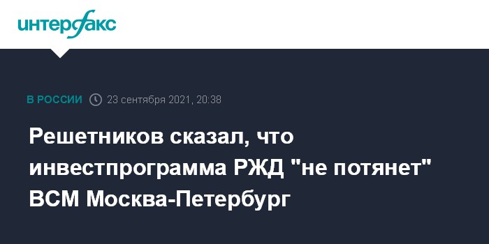 Решетников сказал, что инвестпрограмма РЖД "не потянет" ВСМ Москва-Петербург