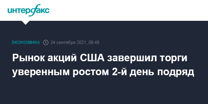 Москва. 24 сентября. INTERFAX.RU - Американские фондовые индексы завершили уверенным ростом вторые торги подряд на итогах сентябрьского заседания Федеральной резервной системы (ФРС).