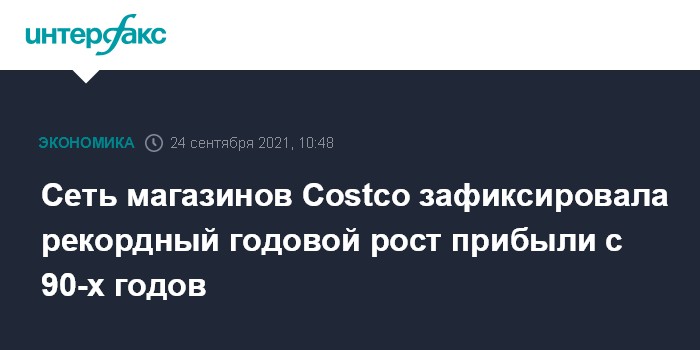 Москва. 24 сентября. INTERFAX.RU - Costco Wholesale Corp., оператор крупнейшей в США сети клубных магазинов-складов, зафиксировала самый масштабный с 1990-х годов рост годовой чистой прибыли и выручки на фоне активного спроса в условиях пандемии.
