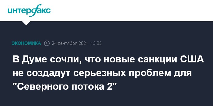 "Может быть, трудности создаст - связанные с реализацией уже самого газа, наполняемости трубы. Конечно, скажем так, лучше было бы, чтобы таких решений не было - я бы так сказал", - сказал Аксаков "Интерфаксу" в пятницу, отвечая на вопрос о перспективах и последствиях возможных санкций США.