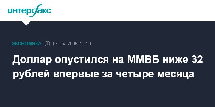 Москва. 13 мая. INTERFAX.RU – Доллар снижался ниже 32 рублей в первые минуты торгов на ММВБ в среду, обновив минимум за 4 месяца на фоне продолжения роста евро на Forex и укрепления рубля к бивалютной корзине.