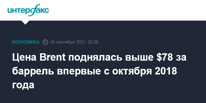 Стоимость ноябрьских фьючерсов на нефть Brent на лондонской бирже ICE Futures к 20:15 по московскому времени составила $78,1 за баррель, что на $0,85 (1,1%) выше цены на закрытие рынка в четверг. Цена Brent не поднималась выше $78 за баррель с октября 2018 года.