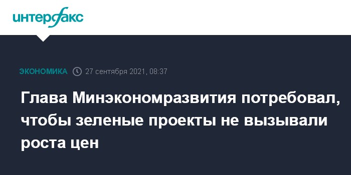 Глава Минэкономразвития потребовал, чтобы зеленые проекты не вызывали роста цен