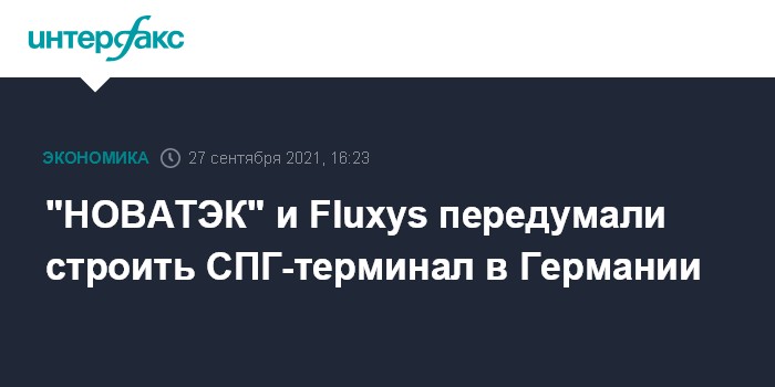 Москва. 27 сентября. INTERFAX.RU - "НОВАТЭК" и бельгийская Fluxys отказались от строительства среднетоннажного СПГ-терминала в порту Росток, сообщили "Интерфаксу" два источника, знакомых с ситуацией.