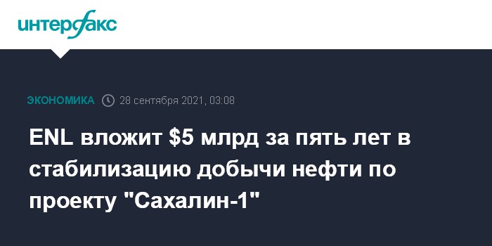 ENL вложит $5 млрд за пять лет в стабилизацию добычи нефти по проекту "Сахалин-1"
