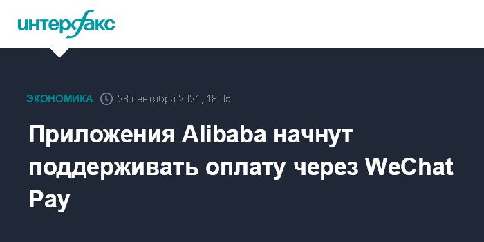 Москва. 28 сентября. INTERFAX.RU - Китайский гигант интернет-торговли Alibaba Group Holding Ltd. объявил, что начал разрешать пользователям покупать товары в некоторых своих предложениях с помощью WeChat Pay, платежного сервиса своего конкурента Tencent Holding Ltd., сообщает CNBC.