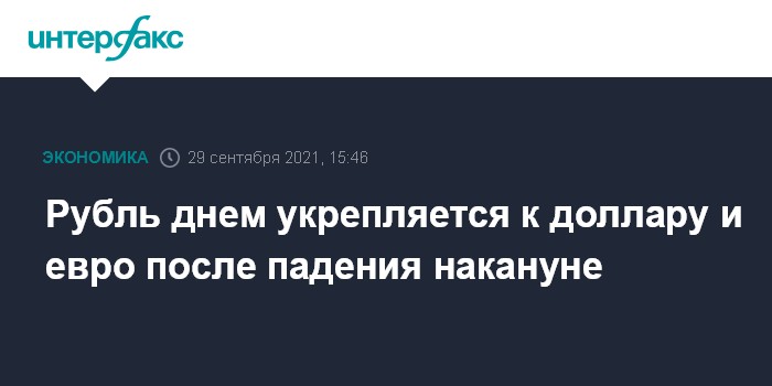 Москва. 29 сентября. INTERFAX.RU - Доллар и евро дешевеют на Московской бирже в среду днем, рубль подрастает к бивалютной корзине после падения по итогам предыдущих торгов и в ожидании новых сигналов с внешних рынков.