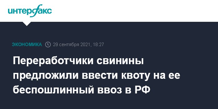 Москва. 29 сентября. INTERFAX.RU - Переработчики свинины, обеспокоенные ростом цен на сырье, предлагают ввести квоту на ее беспошлинный импорт. Производители мяса – против этого, уверены в стабилизации цен.